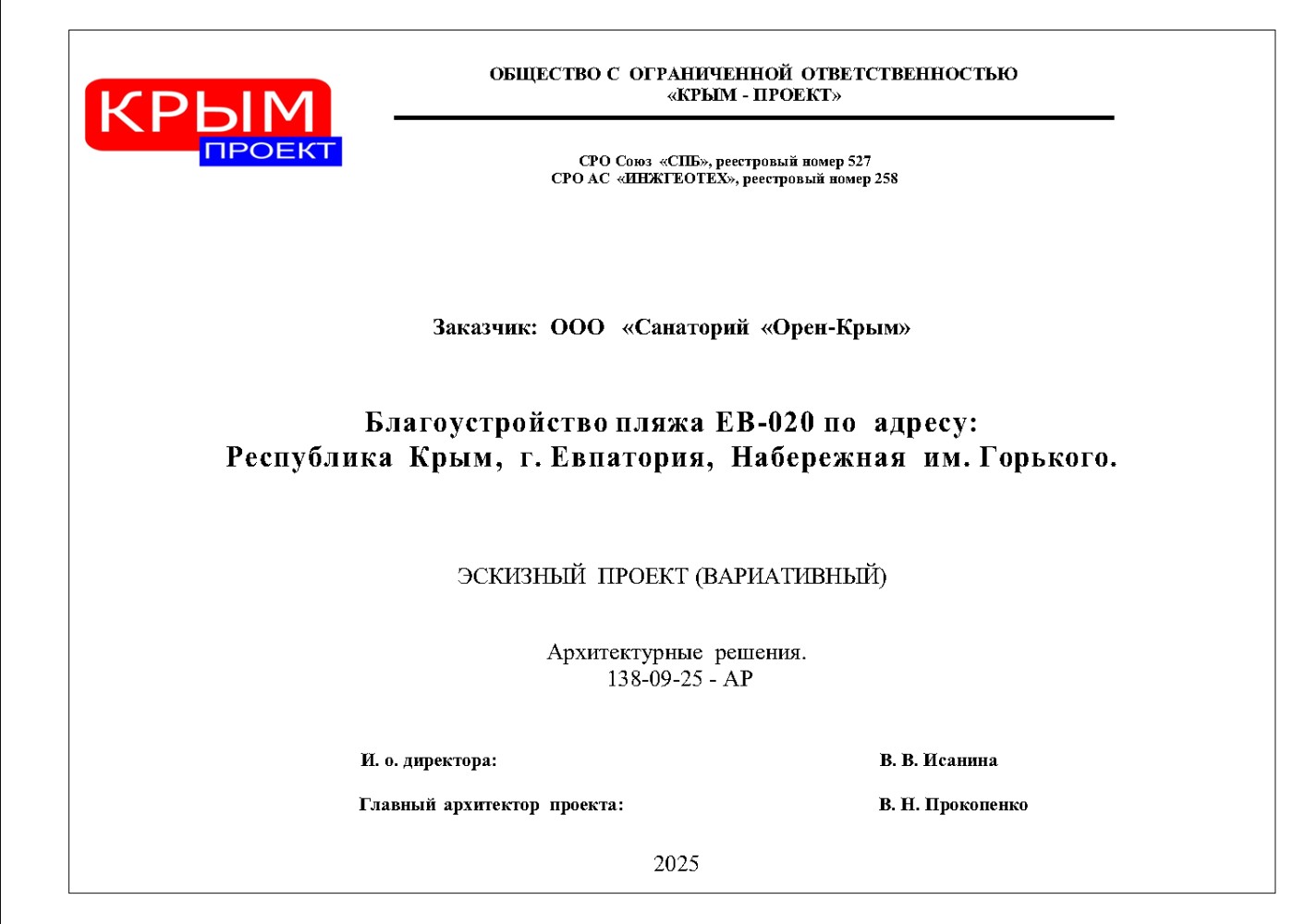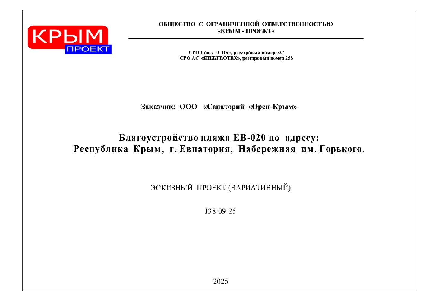 Проект реконструкции пляжа санатория «Орен-Крым»